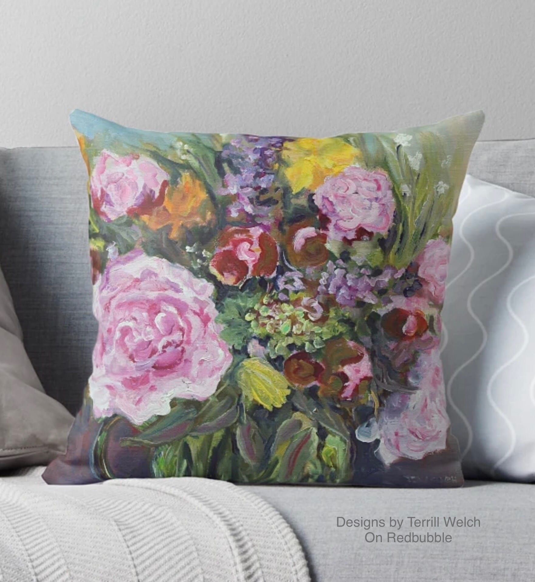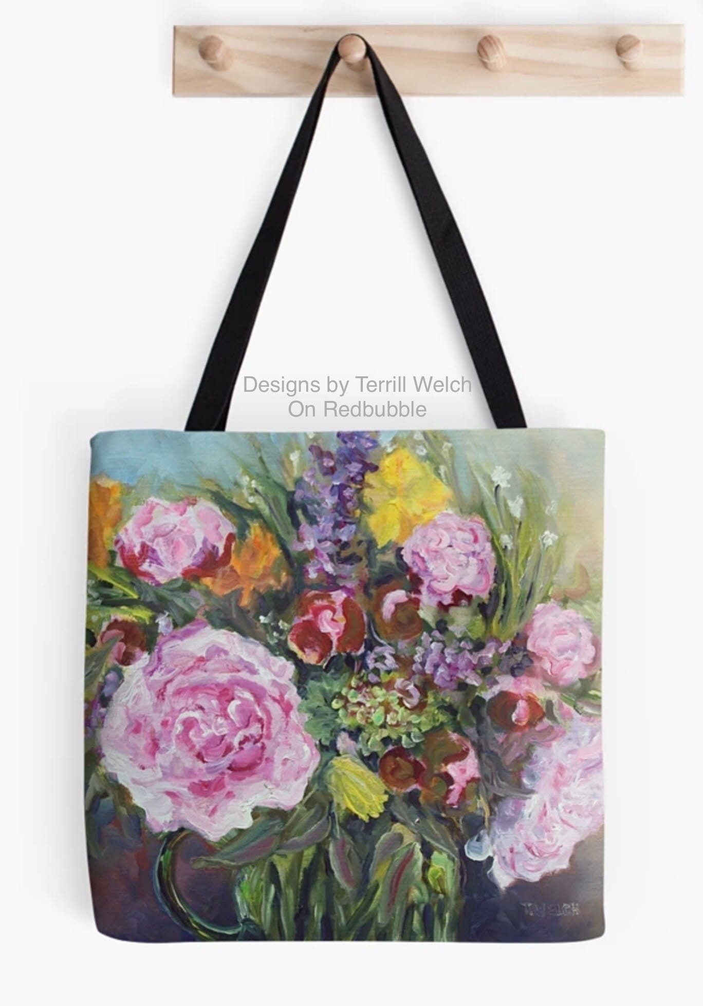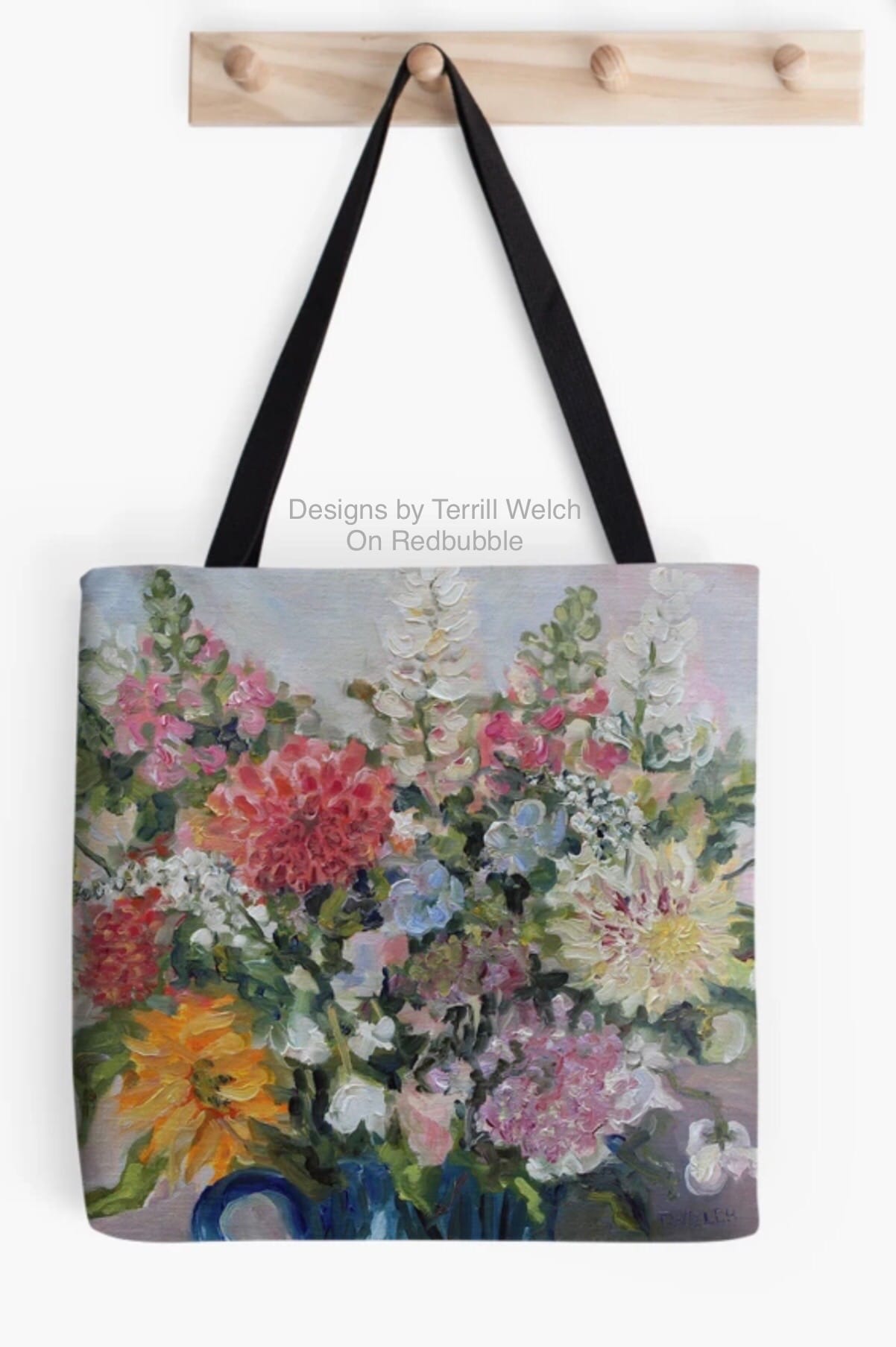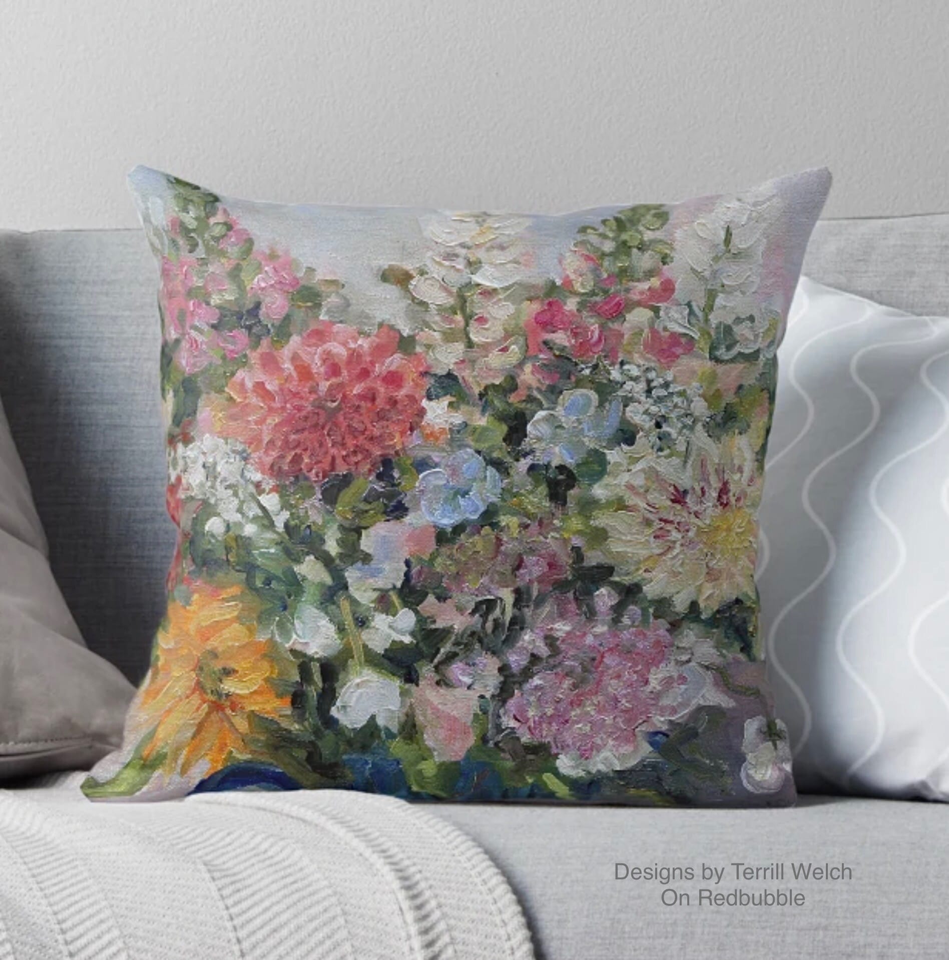 There have been sales though. They have been happening in the print and product offerings of my artwork on Redbubble. There have been sales of framed prints, posters, throw pillows, totes, aprons and greeting cards mostly from Canadian customers. Therefore, I have taken the time to add a couple more new designs featuring a few “Summer of Flowers” paintings. I am particular pleased with the throw pillows and totes!