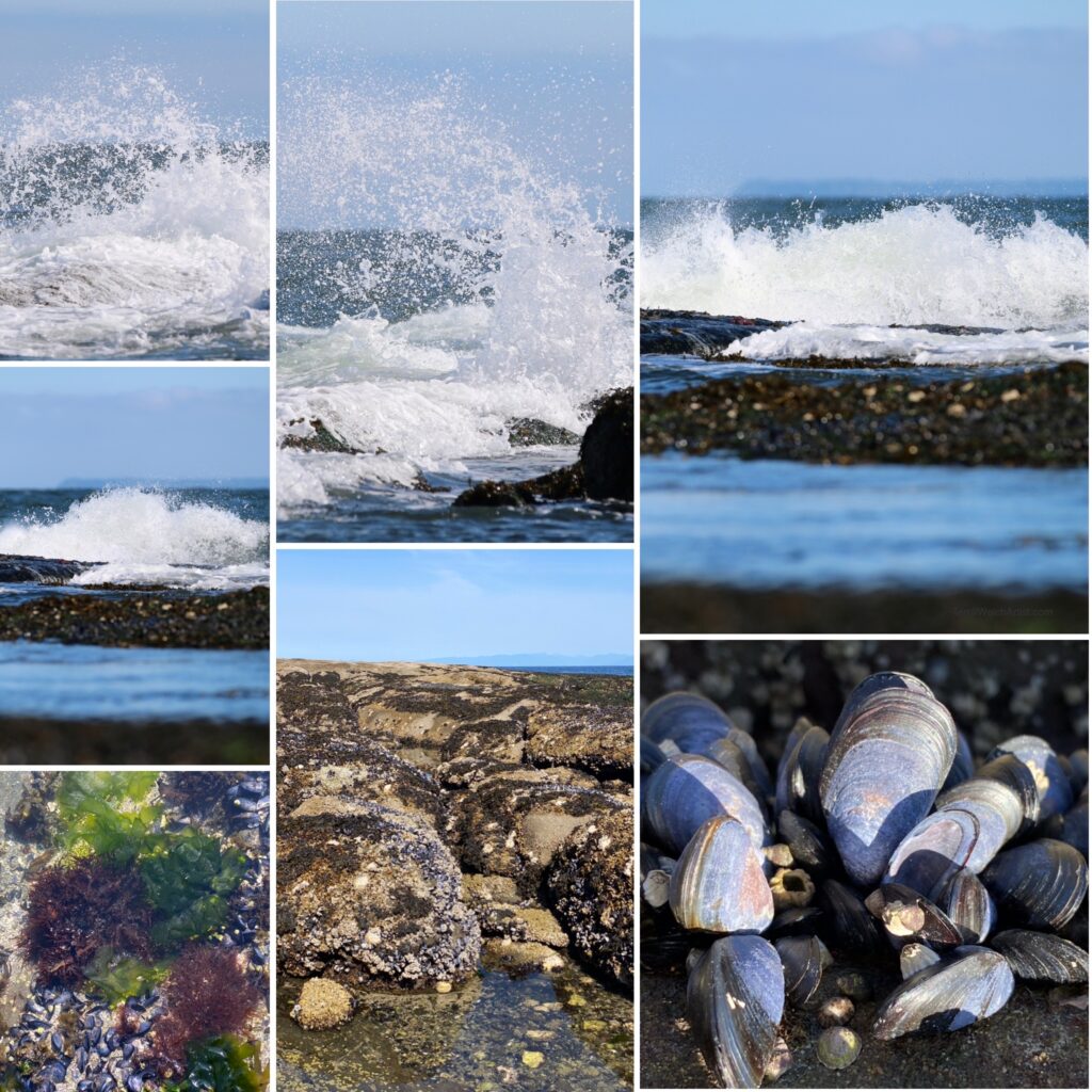 My references were gathered during two days. The first day was when the wind came up and I went out in the reefs during a low tide. Reef Bay in what is now called Mayne Island is on the protected Strait of Georgia in the Salish Sea. We only get significant wave action if there is a wind.