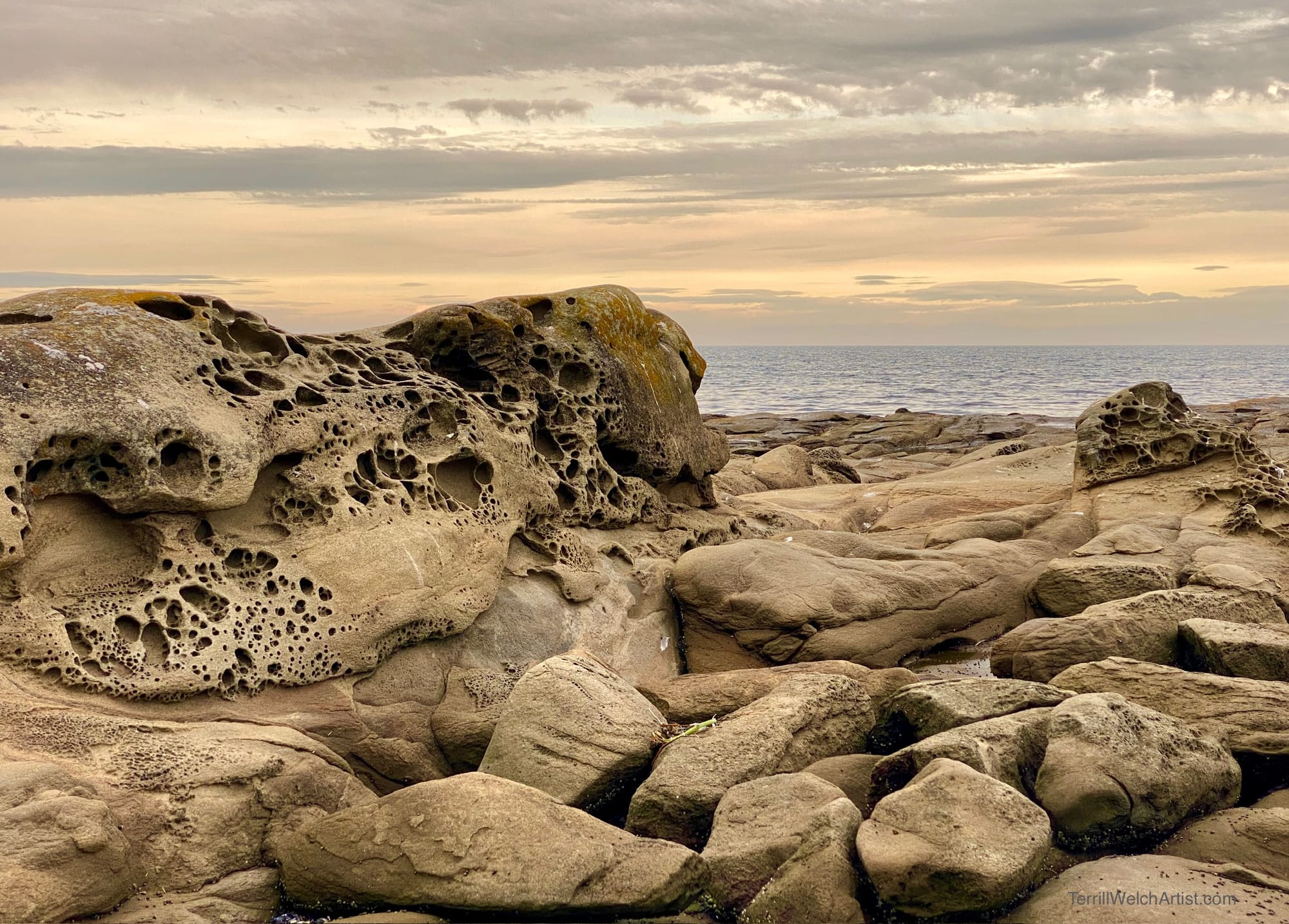 Gripped by the beauty of unsettled weather and a slate grey sea, I meander the reef catching a soft breeze mixed with a few drops of rain. Weather! I think I will have a large serving of weather for the next few months!