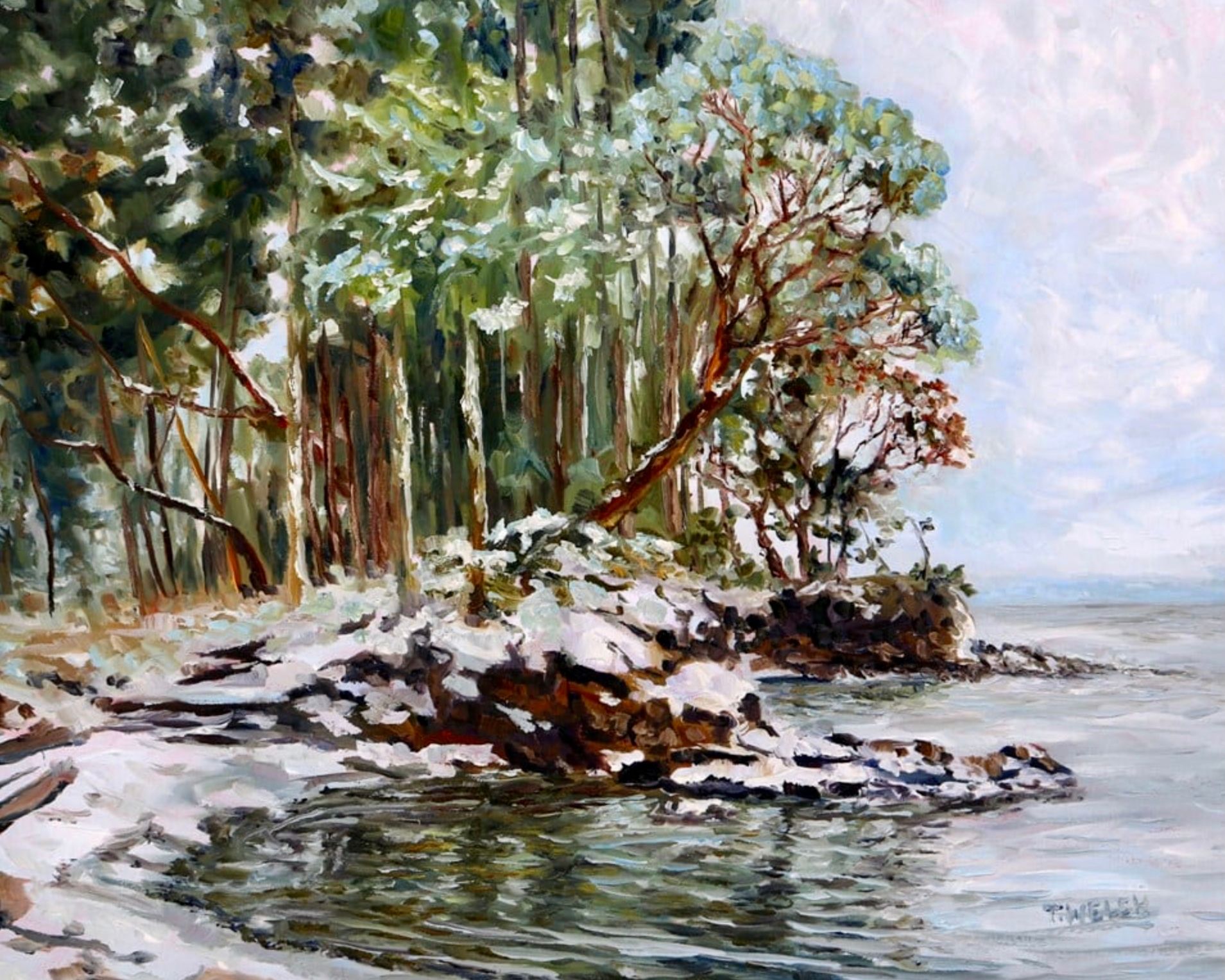 Painting snow and winter in a geographic rainforest is an eclectic painting practice that involves the study of trees in all season.